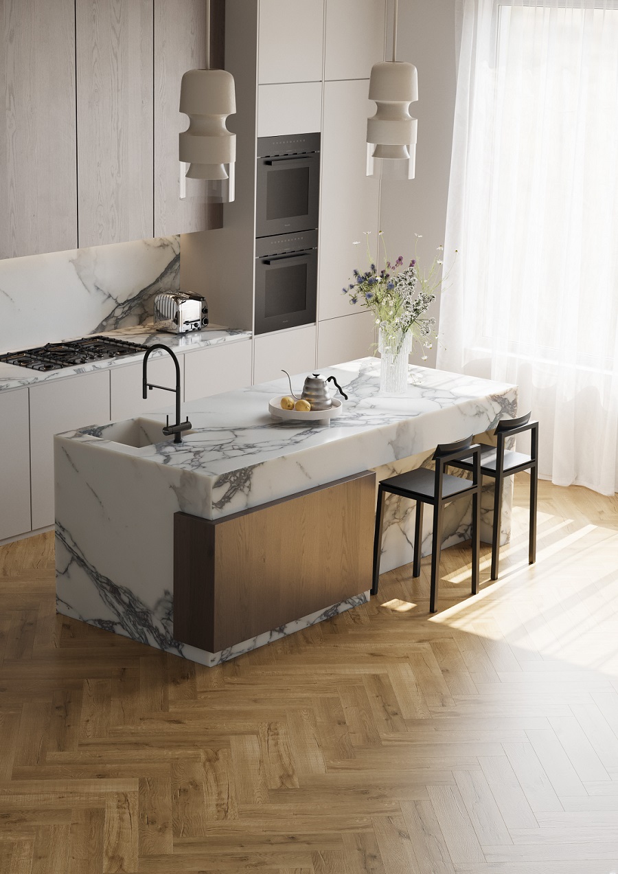 Сначала я думал об обычной плитке, однако в процессе подумал о кварцевом ламинате. Заказать решил в компании Fargo, так как много хорошего о них слышал да и бренд известен на всю Россию. Выбрал Fargo Comfort. Хочу сказать, что совсем не разочарован кварцевым ламинатом, укладывается он легко и быстро, по нему приятно ходить, а кухня визуально стала выглядеть еще лучше.